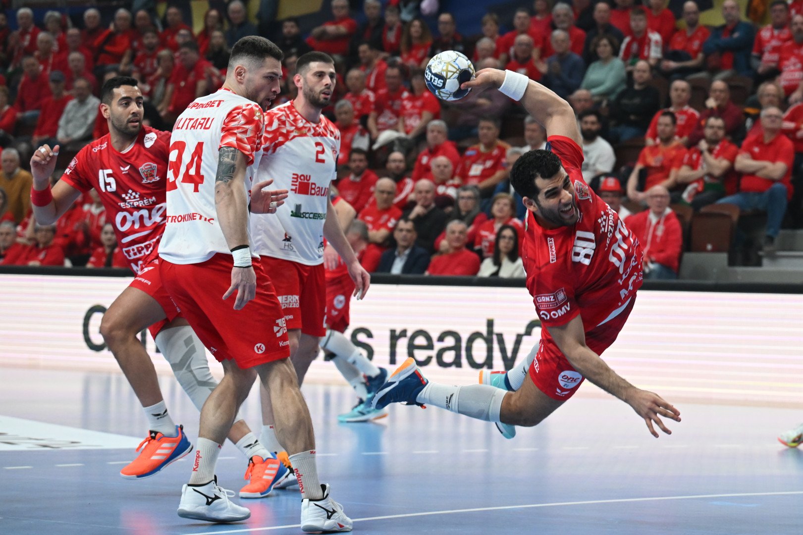 Szerencsére akkor már csapatunk sem állt, ahogyan tette azt az első három percben. Akkor három elrontott támadás és három bukaresti gól született, 0-3 állt az eredményjelzőn. Aztán a századik veszprémi tétmeccsét vívó Hugo Descat megtörte a jeget, egyszersmind megkezdte a hatvan percen át tartó show-ját. Persze, nem volt elég, hogy egyedül is képes volt elképesztően pimasz gólokra, olykor még egy Dragan Pechmalbec-től érkező hát mögötti passzt is képes volt gólra váltani. Mondjuk az első félidőben összességében is jól ment a francia légiónak, a Descat, Nedim Remili, Yanis Lenne hármas 10 gólt szerzett csapatunk 18 találatából.