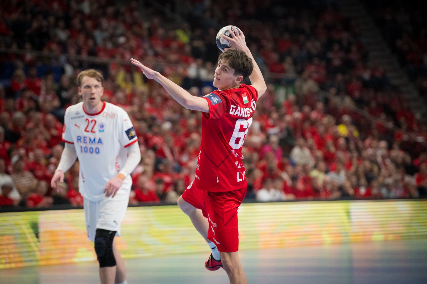 A megható pillanatok után csapatunk rálépett a gázpedálra, és amikor a 45. perc elején Remili átlövésből „beragasztotta” a 30. gólunkat is, már sejteni lehetett, akárcsak egy hete, most is 40 fölé jutunk a norvég bajnok ellen. De még mielőtt ez megtörtént volna, jött a közönség szempontjából a meccs többszörösen is legfontosabb jelenete. Az 52. percben, 36-27-nél hetest kaptunk, és a mindössze 18 éves tehetségünk, Gáncs-Pető Máté állt oda elvégezni azt. Lövőcselek után nem is hibázott, megszerezte pályafutása első Bajnokok Ligája-gólját, amit a közönség annak rendje és módja szerint megünnepelt. Majd pedig jöhetett a hagyományos rászámolás is!